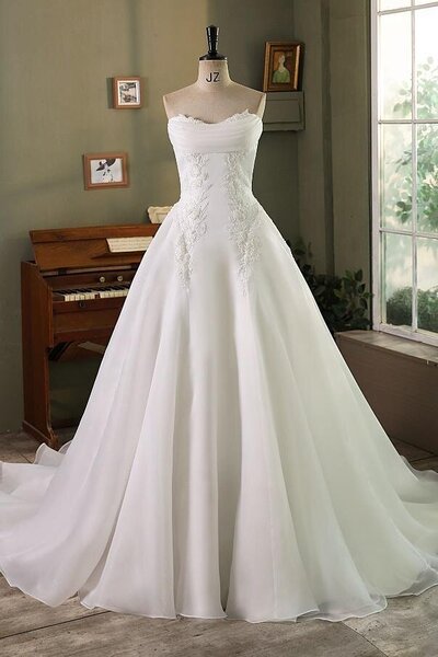 Strapless A-Line Floral Wedding Dress with Detachable sleeves